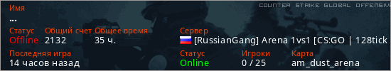 Играет на Counter Strike Global Offensive сервере. Страна: РоссияПервый раз замечен 22:27 27.08.2023
