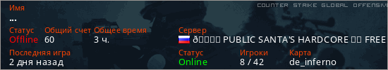 Играет на Counter Strike Global Offensive сервере. Страна: РоссияПервый раз замечен 04:41 26.01.2025