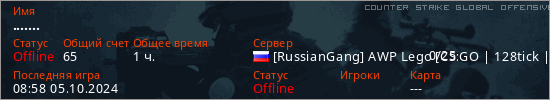 Играет на Counter Strike Global Offensive сервере. Страна: РоссияПервый раз замечен 18:03 16.11.2023