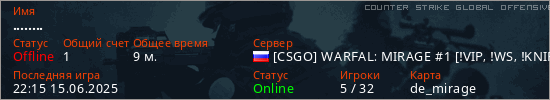 Играет на Counter Strike Global Offensive сервере. Страна: РоссияПервый раз замечен 23:07 14.06.2025