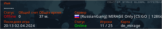 Играет на Counter Strike Global Offensive сервере. Страна: РоссияПервый раз замечен 21:22 30.03.2024