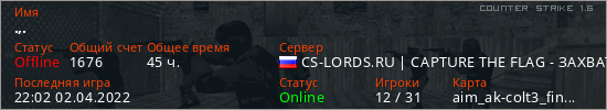 Играет на Counter Strike 1.6 сервере. Страна: РоссияПервый раз замечен 02:02 19.06.2021