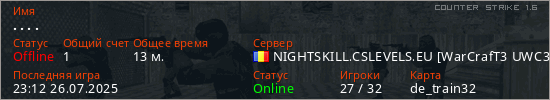 Играет на Counter Strike 1.6 сервере. Страна: РумынияПервый раз замечен 01:01 20.07.2025