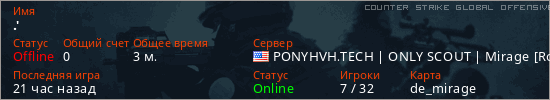 Играет на Counter Strike Global Offensive сервере. Страна: СШАПервый раз замечен 22:50 30.03.2026