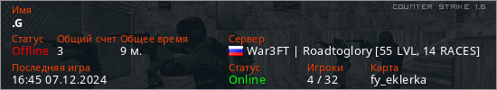 Играет на Counter Strike 1.6 сервере. Страна: РоссияПервый раз замечен 18:40 15.11.2024