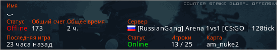 Играет на Counter Strike Global Offensive сервере. Страна: РоссияПервый раз замечен 15:51 01.09.2023