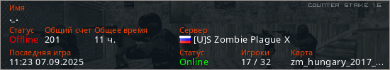 Последний раз был в сети 11:23 07.09.2025 Игрок с таким ником замечен на 42 серверах