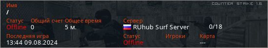 Играет на Counter Strike 1.6 сервере. Страна: РоссияПервый раз замечен 13:42 09.08.2024