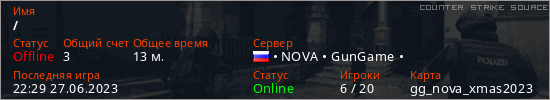 Играет на Counter Strike Source сервере. Страна: РоссияПервый раз замечен 13:18 05.04.2023