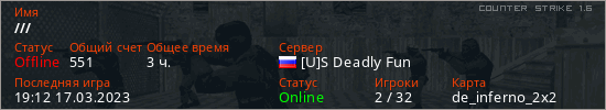 Играет на Counter Strike 1.6 сервере. Страна: РоссияПервый раз замечен 12:48 10.06.2022