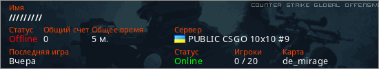 Играет на Counter Strike Global Offensive сервере. Страна: УкраинаПервый раз замечен 13:51 08.03.2026