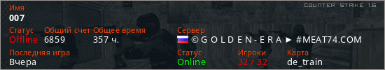 Играет на Counter Strike 1.6 сервере. Страна: РоссияПервый раз замечен 07:29 14.01.2023