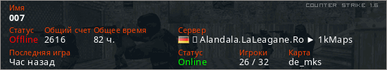 Последний раз был в сети Вчера Игрок с таким ником замечен на 65 серверах
