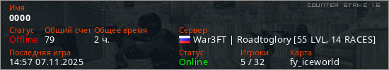 Последний раз был в сети 14:57 07.11.2025 Игрок с таким ником замечен на 47 серверах