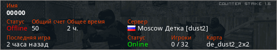 Играет на Counter Strike 1.6 сервере. Страна: РоссияПервый раз замечен 17:02 10.04.2022