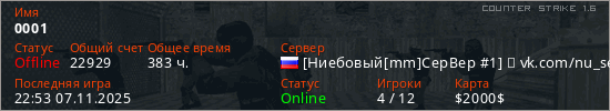 Последний раз был в сети 22:53 07.11.2025 Игрок с таким ником замечен на 27 серверах