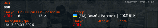 Играет на Counter Strike 1.6 сервере. Страна: УкраинаПервый раз замечен 13:55 29.03.2026