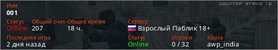 Играет на Counter Strike 1.6 сервере. Страна: РоссияПервый раз замечен 12:27 10.01.2020