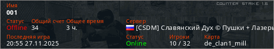 Играет на Counter Strike 1.6 сервере. Страна: РоссияПервый раз замечен 16:10 08.03.2024