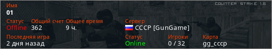 Последний раз был в сети Вчера Игрок с таким ником замечен на 51 сервере