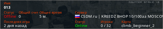 Играет на Counter Strike 1.6 сервере. Страна: РоссияПервый раз замечен 18:57 28.04.2026