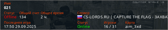 Последний раз был в сети 17:50 29.09.2025 Игрок с таким ником замечен на 30 серверах