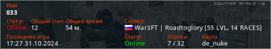 Последний раз был в сети 17:27 31.10.2024 Игрок с таким ником замечен на 22 серверах
