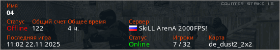 Последний раз был в сети 11:02 22.11.2025 Игрок с таким ником замечен на 32 серверах