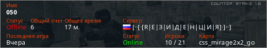 Последний раз был в сети Вчера Игрок с таким ником замечен на 21 сервере