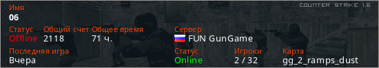 Играет на Counter Strike 1.6 сервере. Страна: РоссияПервый раз замечен 20:06 31.01.2023