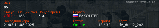 Последний раз был в сети 21:03 11.08.2025 Игрок с таким ником замечен на 30 серверах