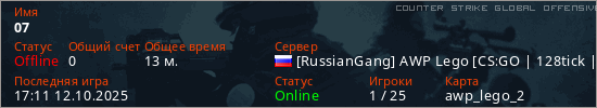 Последний раз был в сети 17:11 12.10.2025 Игрок с таким ником замечен на 50 серверах