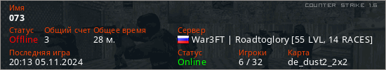 Последний раз был в сети 20:13 05.11.2024 Игрок с таким ником замечен на 9 серверах