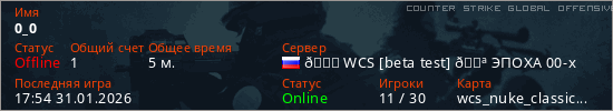 Играет на Counter Strike Global Offensive сервере. Страна: РоссияПервый раз замечен 16:50 31.01.2026