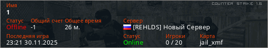 Играет на Counter Strike 1.6 сервере. Страна: РоссияПервый раз замечен 00:20 08.11.2025