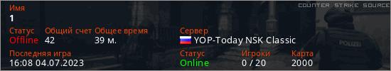 Играет на Counter Strike Source сервере. Страна: РоссияПервый раз замечен 06:18 18.03.2023