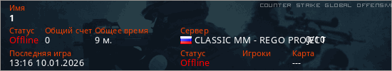 Играет на Counter Strike Global Offensive сервере. Страна: РоссияПервый раз замечен 21:42 31.12.2025