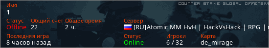 Играет на Counter Strike Global Offensive сервере. Страна: РоссияПервый раз замечен 09:06 28.09.2025
