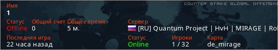 Играет на Counter Strike Global Offensive сервере. Страна: РоссияПервый раз замечен 23:41 22.02.2026
