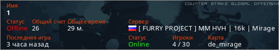 Играет на Counter Strike Global Offensive сервере. Страна: РоссияПервый раз замечен 19:36 26.02.2026