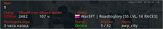 Последний раз был в сети 2 часа назад Игрок с таким ником замечен на 81 сервере