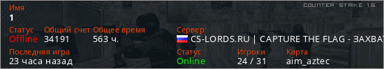 Последний раз был в сети 6 часов назад Игрок с таким ником замечен на 81 сервере