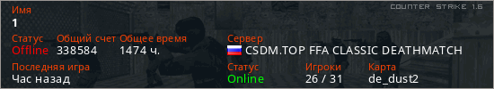 Последний раз был в сети 6 часов назад Игрок с таким ником замечен на 81 сервере