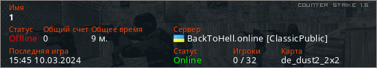 Играет на Counter Strike 1.6 сервере. Страна: УкраинаПервый раз замечен 00:36 11.09.2023