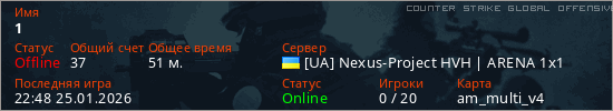 Играет на Counter Strike Global Offensive сервере. Страна: УкраинаПервый раз замечен 19:14 23.01.2026