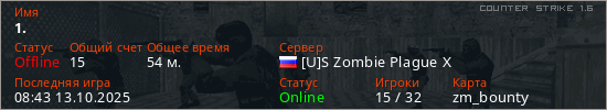 Играет на Counter Strike 1.6 сервере. Страна: РоссияПервый раз замечен 15:53 07.08.2021