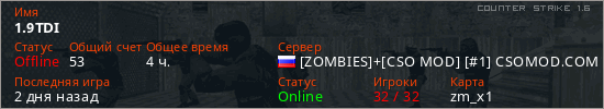 Играет на Counter Strike 1.6 сервере. Страна: РоссияПервый раз замечен 22:16 21.02.2026