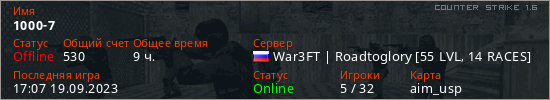 Играет на Counter Strike 1.6 сервере. Страна: РоссияПервый раз замечен 17:40 25.01.2021
