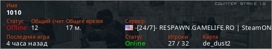 Играет на Counter Strike 1.6 сервере. Страна: СШАПервый раз замечен 14:09 02.11.2025