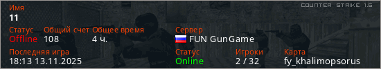 Последний раз был в сети 18:13 13.11.2025 Игрок с таким ником замечен на 59 серверах